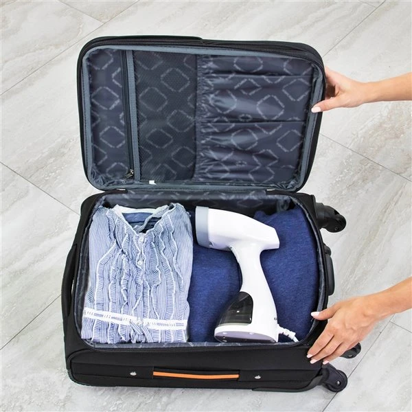 Défroissez, rafraîchissez et nettoyez à la vapeur les vêtements et les tissus avec le défroisseur à vapeur à main de Kalorik Home. Ce défroisseur à vapeur fournit 12 minutes de vapeur en continu et peut être utilisé sans danger sur la plupart des tissus.Il défroisse, adoucit et nettoie à la vapeur les vêtements et les tissusCe défroisseur tout-en-un, efficace sur la plupart des tissusPuissance de 1500 watts de vapeur en continuRéservoir d’eau amovible de 300 ml facile à remplirDesign portatif léger parfait pour voyagerIl comprend une brosse pour tissu pour épousseter et rafraîchirParfait pour le coton, la soie, le satin, le polyester, la laine, le velours et plusDoux sur les vêtements délicats tels que les robes, les costumes et les blouses